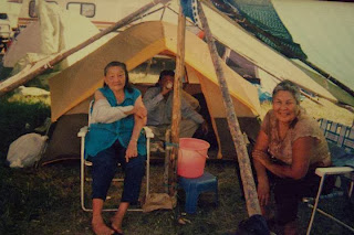 As we were getting closer to Grassland, my mom said in Dene, "Oh, not too far now we will be stopping in this place called "Greengrass". Mama then said in Dene "No, it's not called that, it's called "Gasline" and here is Mrs. TripdeRoche with her high pitched laugh practically rolling with laughter in the backseat. This was so hilarious. I couldn't stop laughing too. They were all so cute. Mama is a very strong woman and inside mama she is very loveable, and I love her."